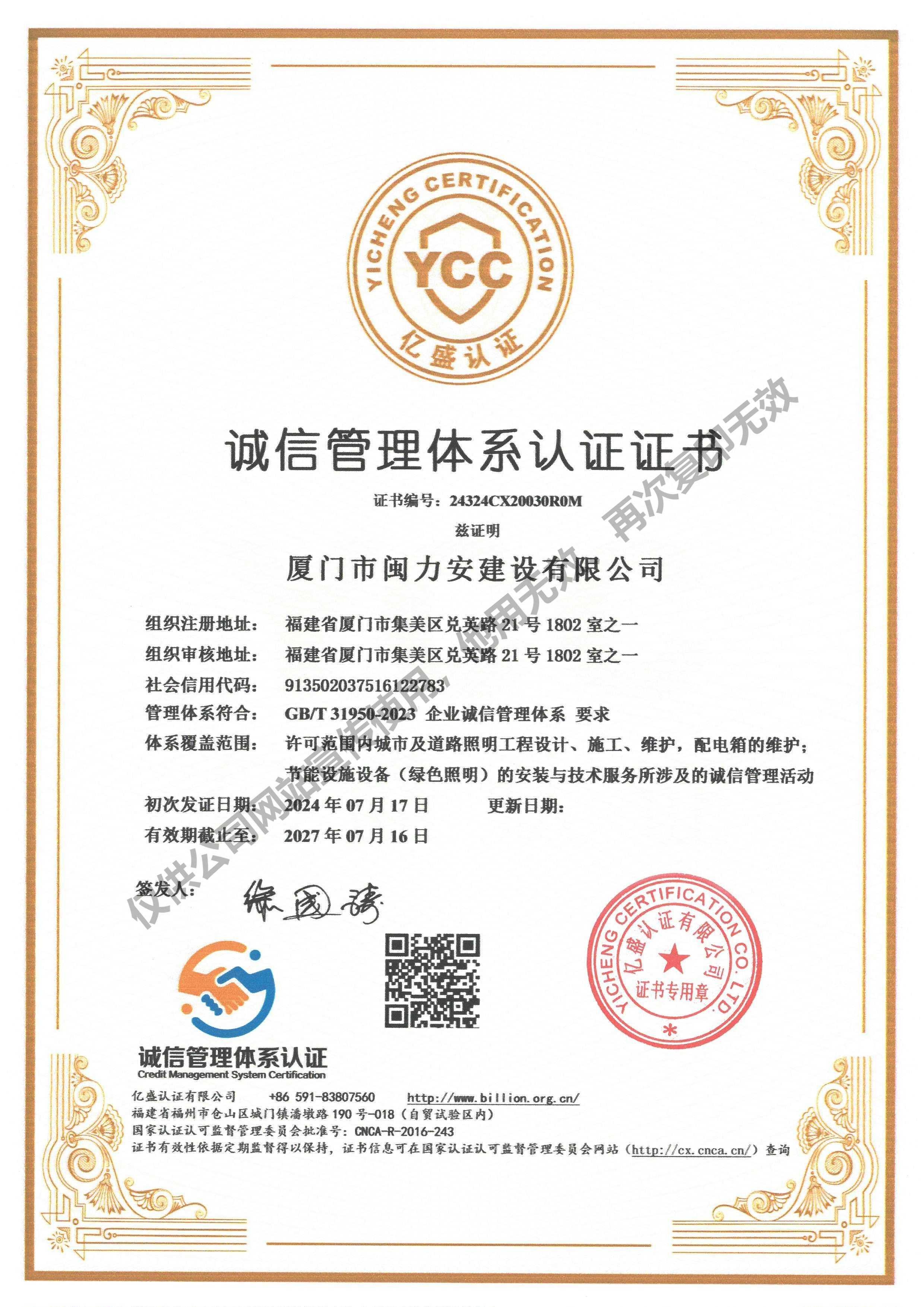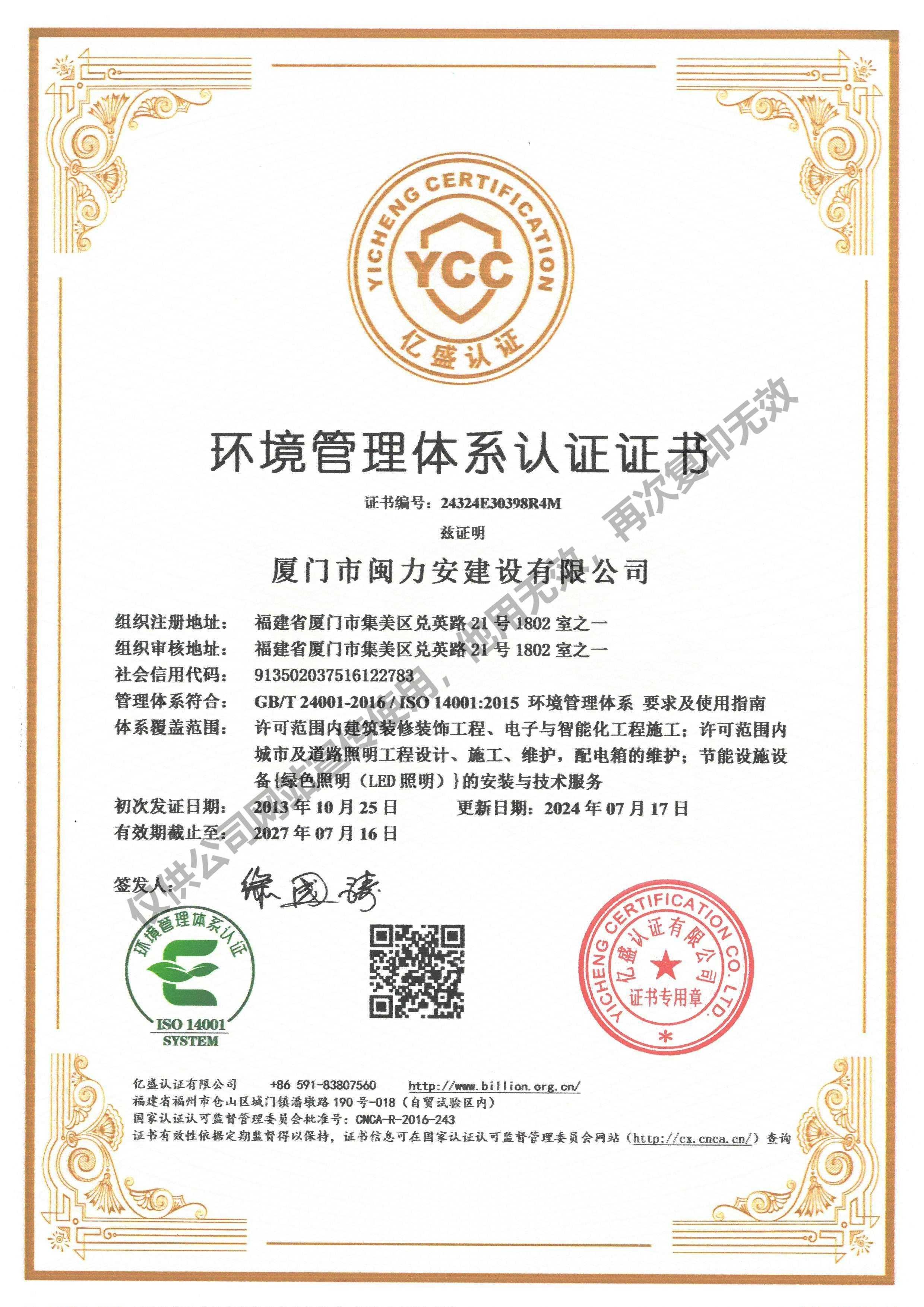 廈門市閩力安建設(shè)有限公司成立于2003年,公司取得市政公用工程施工總承包貳級(jí)、建筑裝修裝飾工程專業(yè)承包壹級(jí)、城市及道路照明工程專業(yè)承包壹級(jí)、電子與智能化工程專業(yè)承包貳級(jí)、消防設(shè)施工程專業(yè)承包貳級(jí)、電力工程施工總承包叁級(jí)、建筑機(jī)電安裝工程專業(yè)承包叁級(jí)、輸變電工程專業(yè)承包叁級(jí)、環(huán)保工程專業(yè)承包叁級(jí)、照明工程設(shè)計(jì)專項(xiàng)甲級(jí)、建筑裝飾工程設(shè)計(jì)乙級(jí)、施工勞務(wù)等資質(zhì)的綜合型企業(yè),公司于2013年通過了ISO9001質(zhì)量體系認(rèn)證,ISO14001環(huán)境管理體系認(rèn)證,OHSAS18001職業(yè)健康安全管理體系認(rèn)證。